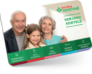 Su Senjoro kortele papildomai, perkant 1 prekę pilna pakuote, kurios kaina ne mažesnė nei 1,50 EUR, taikomos išskirtinės nuolaidos*: